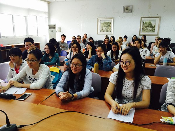 讲座中,许婷婷提到在国外独自生活必定是艰难而富有挑战性的,可以考虑在业余时间做一份兼职,锻炼自己的能力。最后,许婷婷建议英语专业的学生,一定要敢于开口,多跟外国人交流,提升自身的口语能力。