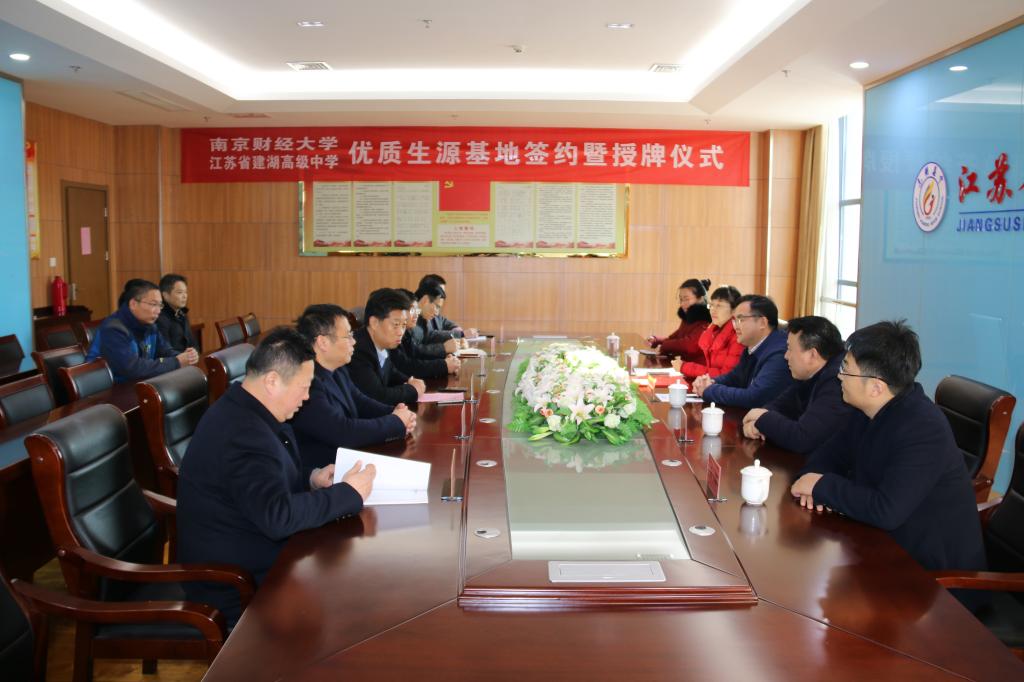 刘浩书记介绍了我校的在人才培养、师资力量、学科设置、科研水平等方面的整体情况,对江苏省建湖高级中学为我校输送大量优质生源表示感谢,希望双方进一步加强合作,共促发展。