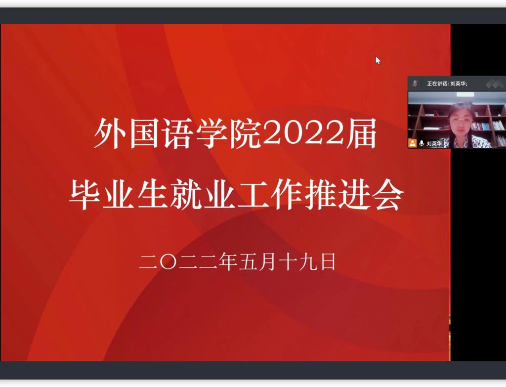 为统筹做好疫情防控和毕业生就业工作,分析形势、明确任务、落实责任,举全院之力实现2022届毕业生更加充分更高质量就业,5月19日晚,肉视频 线上召开2022届毕业生就业工作推进会。学院全体领导、各系主任、2022届硕士生导师、2022届本科生毕业论文指导老师、学工系统全体成员、2019级学生和2018级全体毕业生共计200余人参加会议。会议由学院党委副书记刘英华主持。