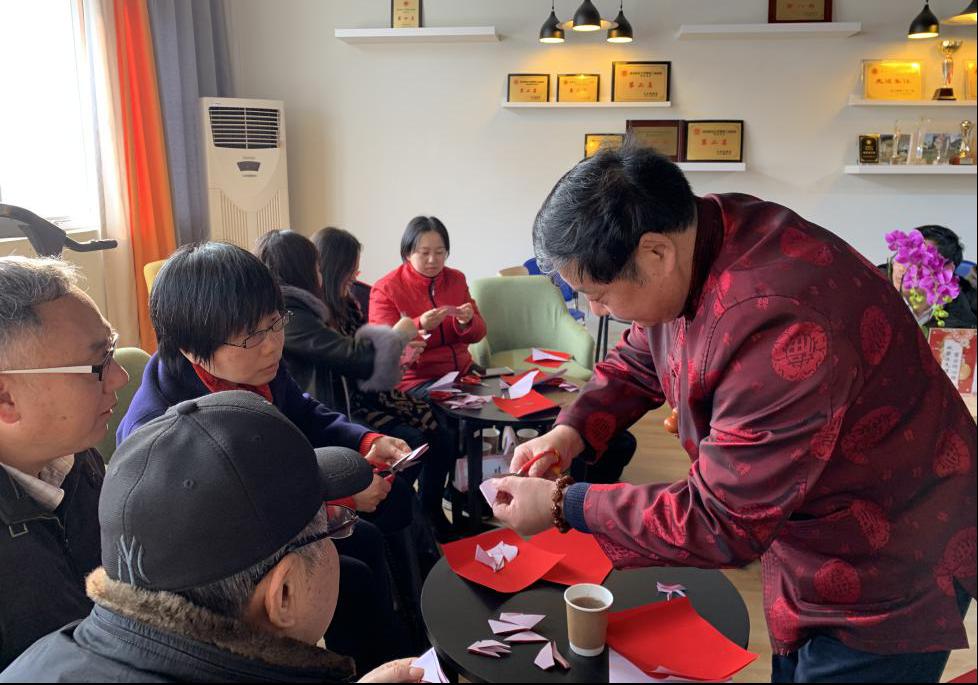 座谈会最后,南京市工艺美术大师、非物质文化剪纸传承人陈耀向大家讲述了传统剪纸艺术的的传承和发展,并亲自带领大家体验了我国传统手工艺——剪纸。大家和乐融融,通过一把剪刀、一张红纸,感受非物质文化遗产的独特魅力,并用手中的方寸剪纸剪出了对学院未来的期冀,剪出了学院上下凝心聚力的拼搏精神。