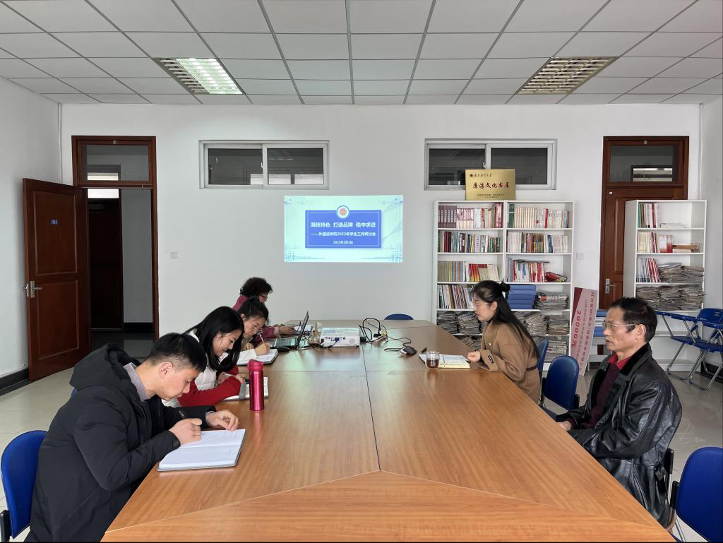 全体学工人员交流了2022年的工作计划以及创新思路。李超雅老师认为深刻把握新时代大学生特征是开展好美育和思政教育的基础和前提,辅导员要主动融入学生,搭上移动互联网快车,让思想政治工作跟上时代节奏。班主任代表段慧老师分享了带班工作的经验,她认为要鼓励学生参加各类学科竞赛,培养学生的美学及科学素养;程水英老师认为要深入学生,经常倾听学生的诉求,同时用好班委,配合辅导员共同做好学生学业帮扶和管理工作,成就美好的人生;文晶老师就学生参加“外研社杯”系列竞赛进行了总结和建议;青年教师代表张晓甜就班主任与辅导员工作配合方面提出了自己的困惑;离退休教师代表孟德明老师勉励辅导员上好每一堂思政课,让新时代青年树立高度的国家认同感和使命感,与时代同向同行,共同进步。