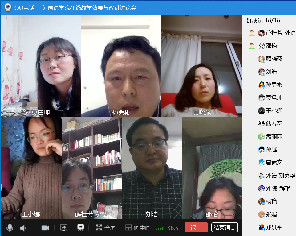 随后,各系主任详细介绍了各系在线授课课程取得的教学效果。大学英语教研室主任张媚老师表示,在开课之前,大外的老师们已经在教研室群里进行了充分而热烈的讨论,U校园、学习通和QQ等多种工具的叠加使用,都充分保证了教学有序高效进行,在对老师、学生的追踪调研中,都得到了很好的反馈。