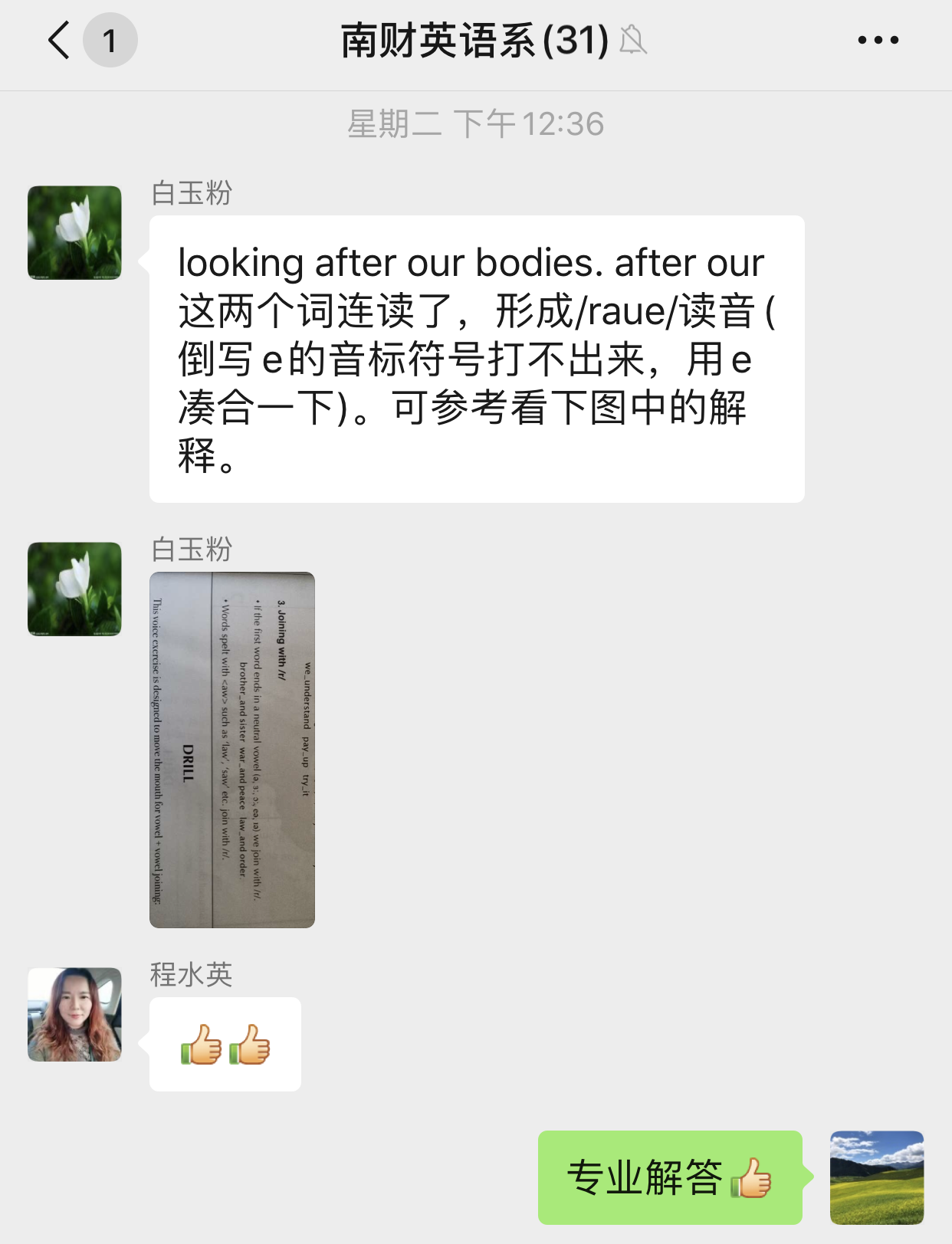 商务英语系主任段燕老师表示,商务英语系教师们严格按照学校的部署,采用在线慕课资源、超星学习通、雨课堂,以及班级QQ群等多种形式,利用学生在线学习+教师远程讲辅的模式有效地开展了课程教学工作。每位老师进行了详细的在线课程记录。胡阳老师延续上一学期带领学生晨读的习惯,坚持早晨6:30开始与学生一起晨读,在线为学生纠正发音。