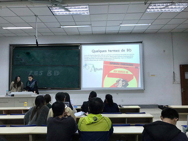 为增强学生法语学习兴趣,促进学生对法国文化的理解,提高学生法语口语能力,近日,肉视频 法语系为法语专业学生及法国文化爱好者开设了系列专题交流活动,交流活动每周举行一次,由法语系的中国及法国老师共同主持,法语系大四学生翻译,活动形式为专题讨论会,讨论主题广泛,涉及法国文学、电影、漫画、音乐及社会生活等方面。
