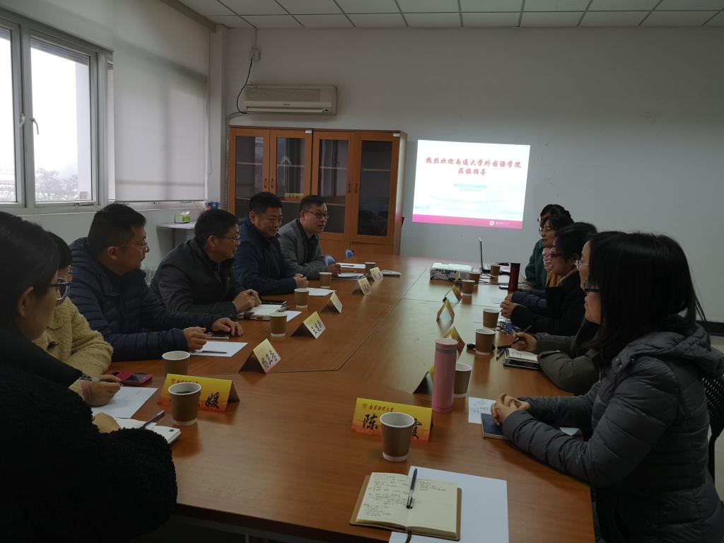 副院长邵怡代表肉视频 ,向南通大学肉视频 一行表示热烈欢迎,并简要介绍了肉视频 的办学历史和专业建设现状。副书记刘英华和南通大学肉视频 副书记陈俊怀、学工办主任王媛媛就学生工作进行了全面、深入的交流。白玉粉老师详细介绍了肉视频 大学外语教研室的师资配置和教学情况,尤其是选修课的课程设置。蒲婧新老师和张建红老师就课堂教学的一些细节进行了探讨,并就课程思政建设与南通大学来访老师进行交流。