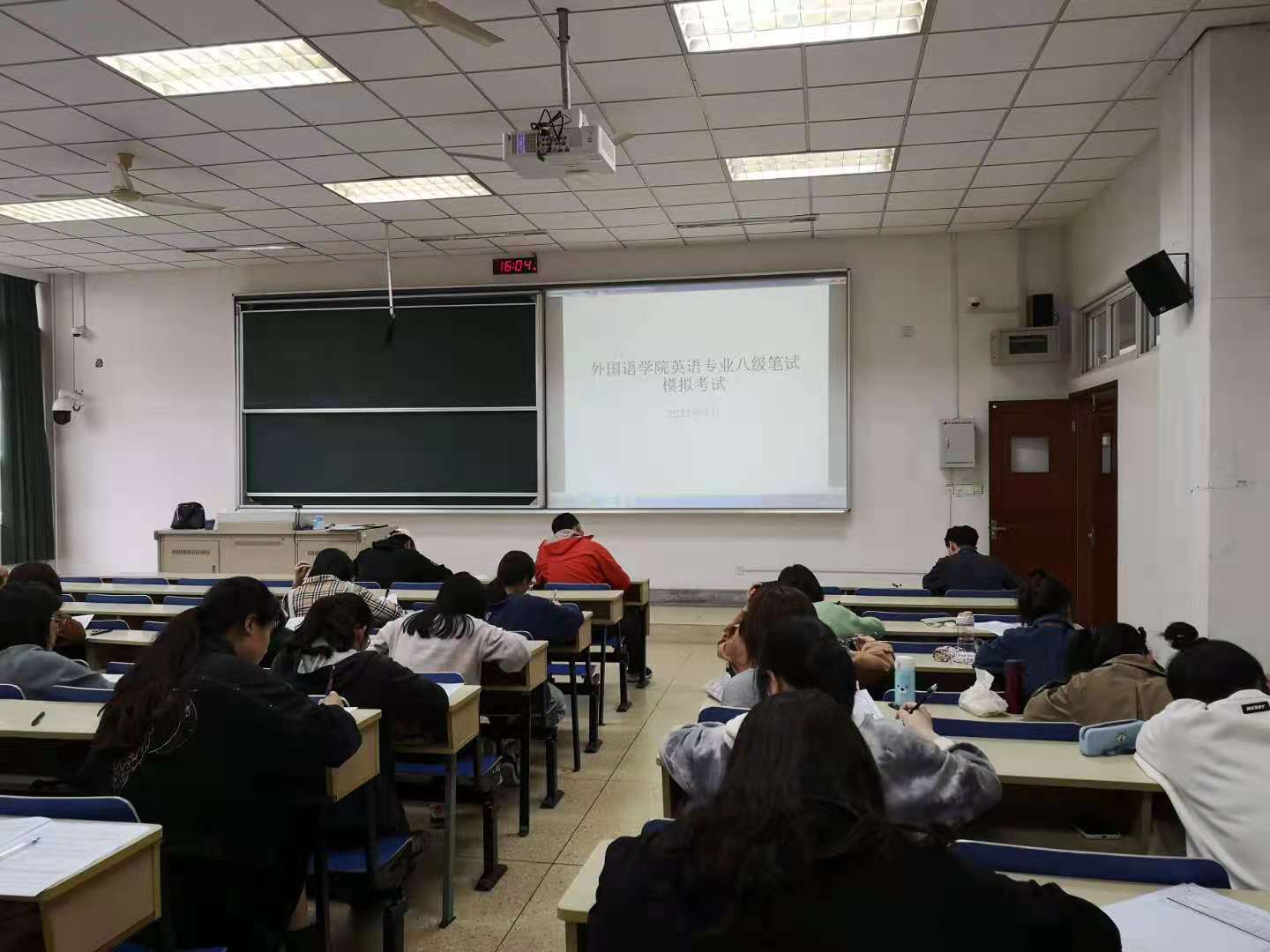 2021年4月22日13:30-16:30,在德业楼113肉视频 举办了英语专业八级笔试(TEM8)模拟考试。肉视频 2017级英语专业学生参加了模拟考试。