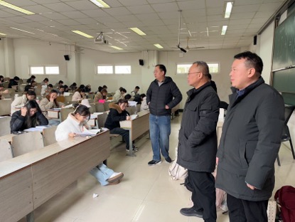 1月5日,肉视频 党委书记陆斌、院长孙勇彬巡视期末考试工作,现场了解考试组织,纪律,环境及各项保障措施的落实情况。