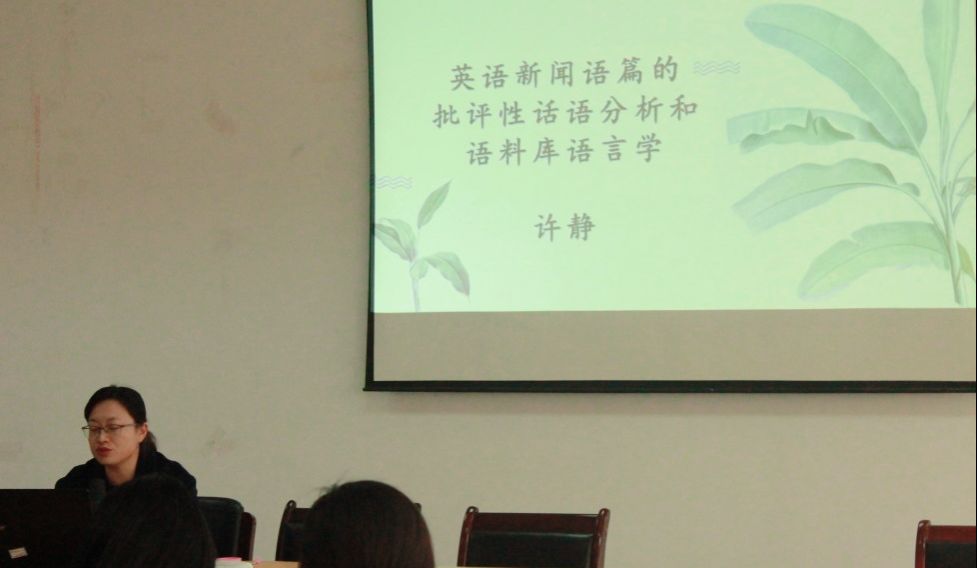 11月19日下午,肉视频 英语语言文学博士许静老师在德正楼308会议室室举办了题为“英语新闻语篇的批评性话语分析”的主题讲座。学院部分本科生参加了讲座。