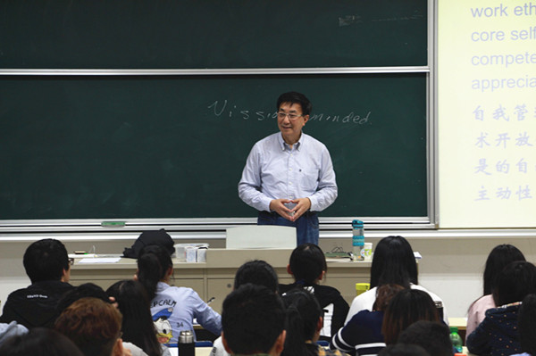 4月20日晚,应肉视频 邀请,教育部大学外语教学指导委员会委员、东南大学李霄翔教授来我校仙林校区管理学科楼117教室作题为“怎样成为一个优秀的语言学习者”的讲座。肉视频 院长肖辉教授主持讲座。肉视频 部分同学聆听了讲座。