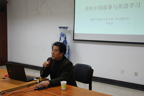 12月22日晚,南京国际关系学院李建波教授应肉视频 邀请在法政学科楼308会议室做了题为“英语学习与讲好中国故事”的学术报告。肉视频 部分师生聆听了报告。