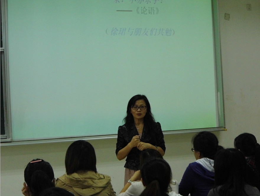 北京外经贸大学博士生导师、《商务外语研究》执行主编徐珺教授应肉视频 邀请,于2013年5月31日上午,在专3-103教室面向全校师生作了“公示语的语言类型及其错误辨析”的报告。报告由党总支书记肖辉教授主持。