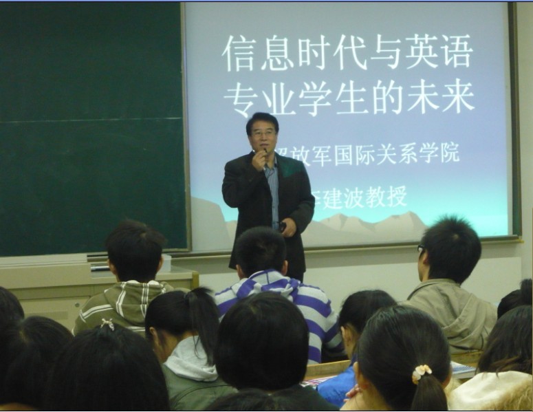应肉视频 邀请,南京解放军国际关系学院李建波教授于2011年11月8号晚在教A205教室进行了一场关于英语专业学习与就业的讲座,主题为《信息时代英语专业的就业》,肉视频 10级全体同学参加。
