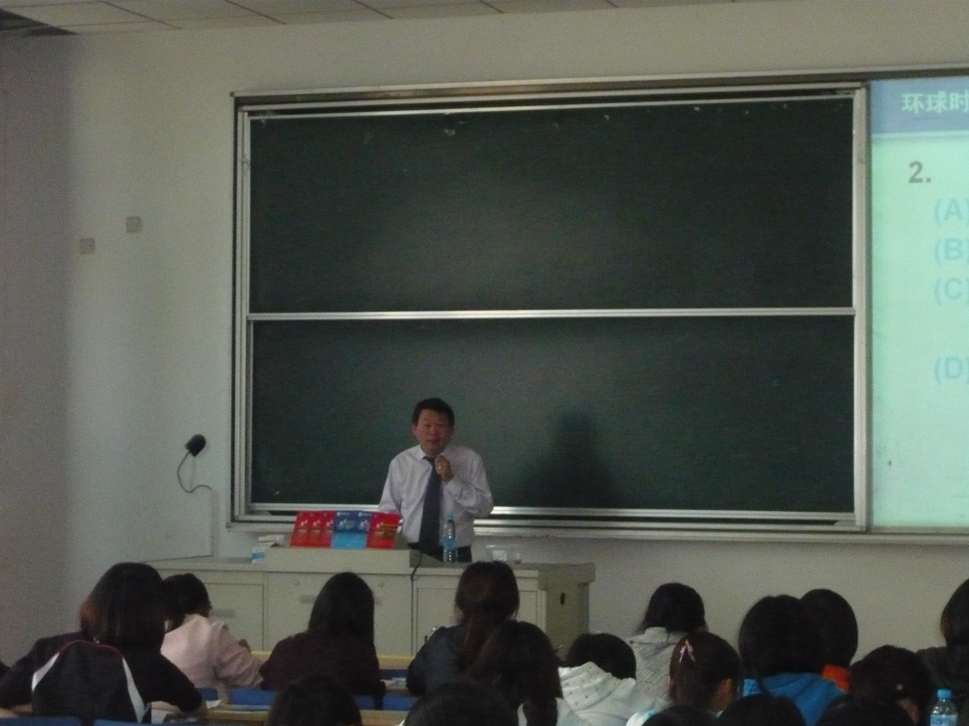 2011年4月20日下午两点在专三101,北京国际关系学院吴中东教授来肉视频 做讲座,主题是英语专业考研的复习方向。