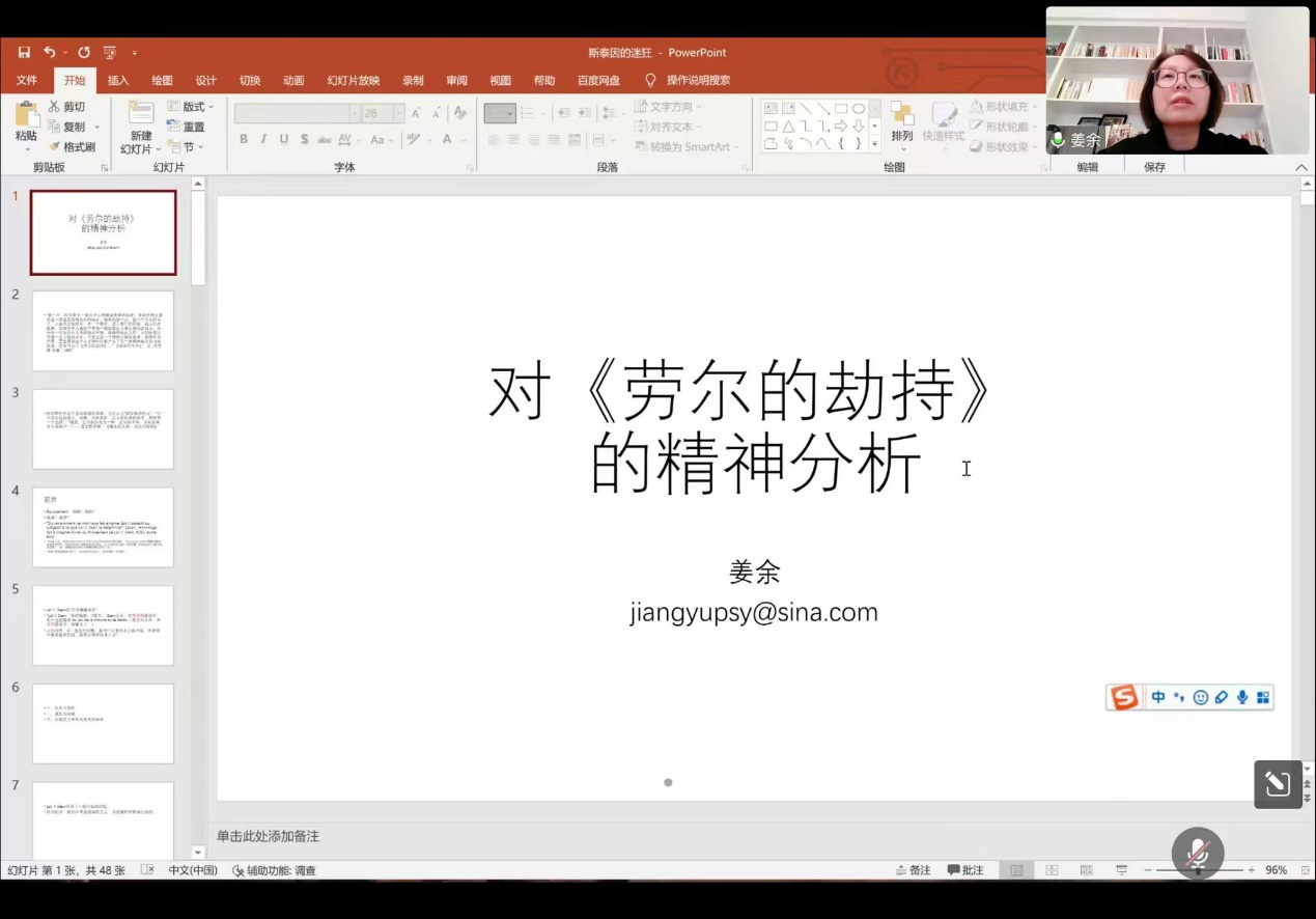 姜余博士是受肉视频 邀请来到肉视频 作讲座,此次讲座在腾讯会议上举行,由孙冬教授主持。姜余博士是法国巴黎七大巴黎狄德罗大学“精神分析与心理病理学”博士。现任东南大学人文学院教师。另外她还是中国心理卫生协会精神分析专委会拉康学组成员,法国弗洛伊德精神分析协会(SPF)执业精神分析家,江苏省精神分析专委会副秘书长。长沙“绿房子”父母儿童心理接待公益机构专业督导。对于精神分析这一领域研究颇深。