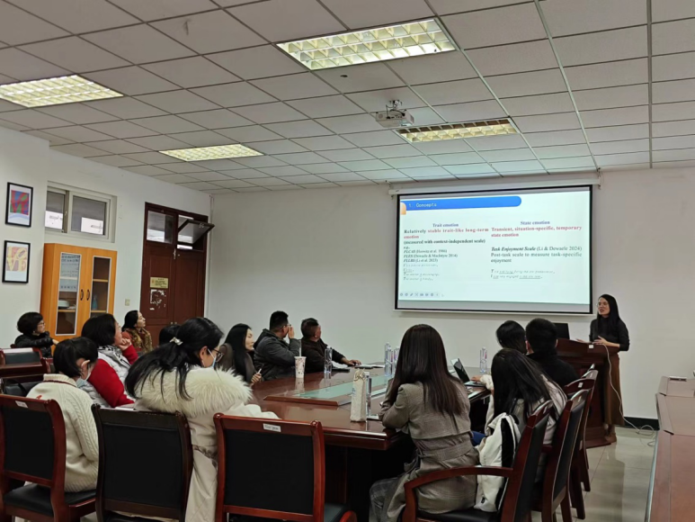 2023年12月14日下午(13:00—14:30),应肉视频 邀请,华中科技大学肉视频 博士生导师李成陈老师在德正楼308会议室为肉视频 师生做了一场题为“二语学习中的情绪研究:现状与前沿趋势”的学术讲座。肉视频 青年教师和研究生参与本次讲座。讲座由张高远教授主持。
