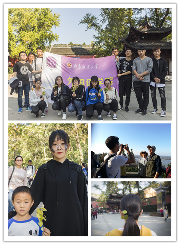 重阳节当天栖霞山风景区向老人免费开放,景区里的老人特别多。登山途中,参加此次登高活动同学们在崎岖的山路上帮忙搀扶老人,大一的陈伟伟同学主动帮老人们拍合照,赢得了路人的点赞。