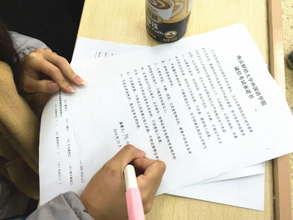 12月29日,各年级辅导员分别召开考风考纪专题班会,呼吁同学们认真复习,诚信应考,共建诚信班级。当天,各班级还组织了诚信考试承诺书签字仪式。各班级班长宣读了诚信考试承诺内容后,同学们在承诺书上郑重签字。