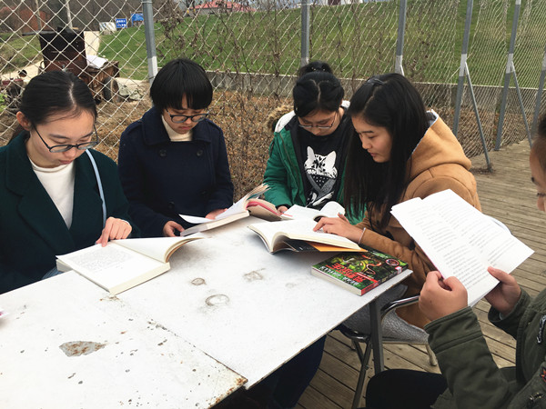 此外,学院还通过微信群发起每周的小组阅读活动,利用周末,在宿舍、操场、咖啡馆、书院开展小组共读活动。同时,发起每天早晨的晨读活动和晚间的晚诵活动,晨读晚诵的内容则围绕外语学习展开,同学们在晨读晚诵基地大声朗诵英美文学和法国文学原文,既复习了课堂内容又锻炼了口语和听力。
