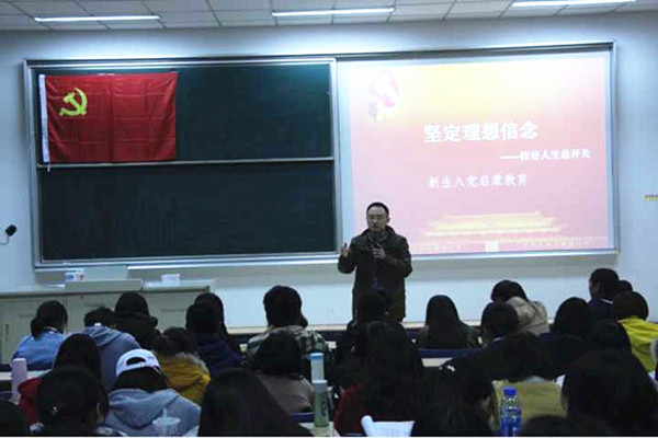 11月8日,肉视频 新生团校(第四期)第二讲在法政学科楼117教室举行。为让新生增强对党的认识,清楚入党要求,积极向党组织靠拢,此次新生团校专门安排了入党启蒙教育。受肉视频 的邀请,此次团课由校党委组织部副部长、机关党委副书记徐刚老师主讲,肉视频 团学干部潘华主持开班活动,肉视频 全体大一团员参与本次团课。