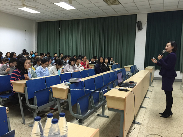 10月30日晚,肉视频 邀请江苏学信学院陆莹老师为全体2016级新生做主题为“大学新生的生涯规划和创业尝试”的讲座,讲座在在仙林校区法政学科楼117教室举行。