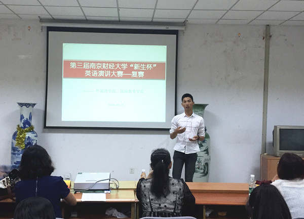 9月23号晚,由肉视频 主办的第三届“新生杯”演讲大赛复赛在法政学科楼308会议室举行,入围复赛的三十名同学参加了比赛,肉视频 陈芙蓉、文晶、程水英三位老师担任评委。