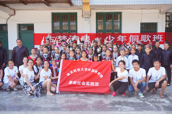 最后,大家在风雨桥合影留念。当日下午两点半,“古梦清泉·少年侗歌班”第二期在西山小学正式开课,由志愿者小老师带领孩子们进行素拓破冰活动,以及韩语兴趣教学。