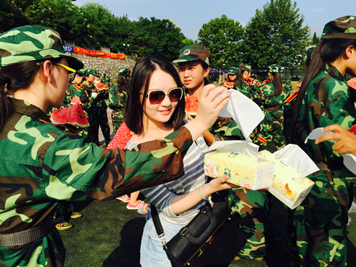 9月8日是新生军训的第三天,当天下午,肉视频 党委副书记李慕原、学工办主任兼15级辅导员薛桂芳和几位学长学姐一同前往中苑足球场看望正在军训的新生,并给新生带去了清凉解渴的西瓜。