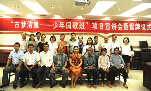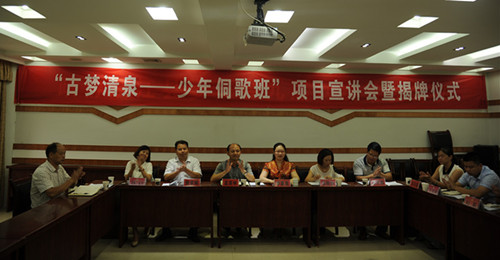 7月16日上午,肉视频 “古梦清泉”暑期实践调研团在贵州省黔东南苗族侗族自治州从江县政协会议室举行了“少年侗歌班”项目宣讲会暨揭牌仪式。肉视频 党委副书记李慕原、从江县人大常委会副主任孟荣林、从江县民族宗教事务局局长敖家辉出席会议;宣讲会还邀请了县委宣传部、团县委、县妇联、县文广局、非遗中心等多家单位领导,以及从江县西山镇陡寨村干部、西山小学校长及侗族老歌师们。宣讲会由肉视频 英语1302班学生,“古梦清泉”侗族文化调研团队长石贤同学主持。