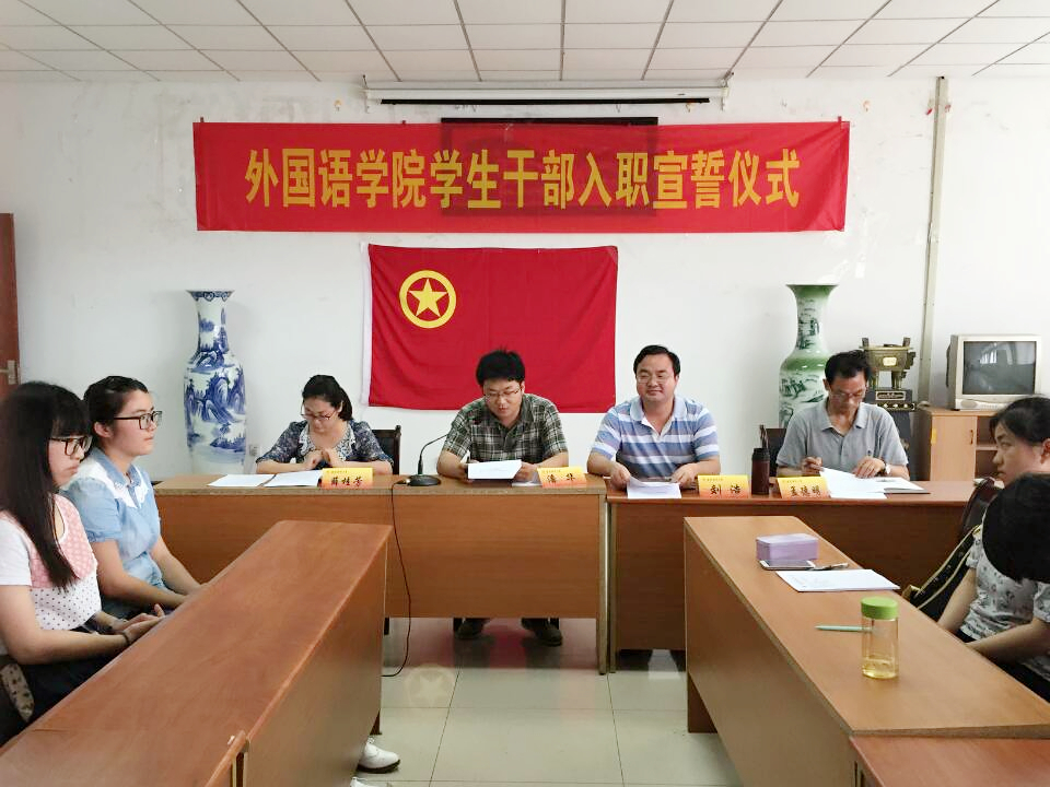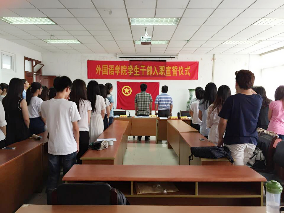 6月24日中午,肉视频 学生干部入职宣誓仪式在法政学科楼308会议室举行。学院党委书记刘浩,分团委书记薛桂芳,教务秘书兼团学干部潘华,辅导员孟德明以及分团委、学生会全体学生干部出席此次仪式。入职仪式由分团委书记薛桂芳主持。