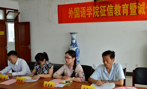 6月4日中午,肉视频 征信教育暨诚信征文颁奖仪式在法政学科楼308教室举行。此次活动邀请了我校校友,招商银行仙林支行客户经理朱杰做征信宣传教育。肉视频 党委副书记李慕原,院学工办主任兼分团委书记薛桂芳,辅导员孟德明及肉视频 全体办理生源地助学贷款学生参加了此次活动。