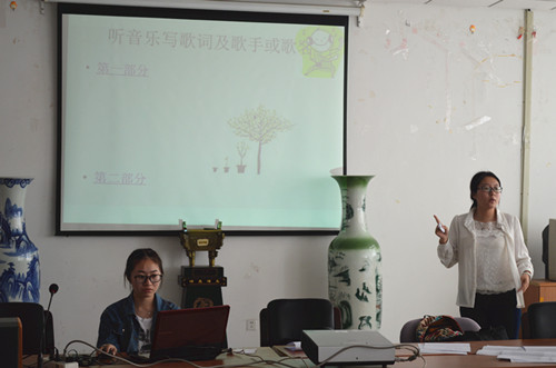5月7日中午,第十二届外语文化节系列活动之“Music & English”在法政学科楼308室举行。此次活动由肉视频 学生会承办。