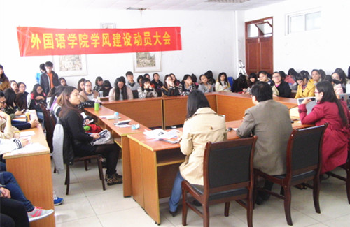 李慕原副书记对学院“学风建设月”的具体安排进行了说明部署。此次学风建设月期间,肉视频 将成立院学风领导小组和督导小组进行专项督查,并展开学风建设大讨论,“向学班级”、“乐学寝室”、“善学达人”评比活动,外域“晨读晚诵”,中西方文化论坛,男生成长沙龙及外文经典文学作品朗诵会等活动,致力打造“融贯中西潜心笃志”这一具有浓郁外院特色的优良学风。