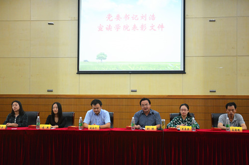院党委书记刘浩宣读学院关于暑期社会实践活动的表彰文件,“关于‘取消英语高考’的社会调查”暑期实践团等4支实践团队获得“肉视频 2014年暑期社会实践活动优秀团队”称号,“‘法语专业在南京的就业前景’调查报告”等4篇暑期实践调研报告“肉视频 2014年暑期社会实践活动优秀调研报告”荣誉,英语1302班陈纤逸等30名同学“肉视频 2014年暑期社会实践活动先进个人”荣誉称号。随后,刘书记分析了目前学院暑期实践工作还存在着“少、弱、散、浅”的问题,并教导大家要总结经验、发扬长处、弥补不足,对于暑期实践工作要“重参与、抓团队、抓实效、抓成果”,并对同学们提出了知识、能力、素质“三位一体”并重发展的要求。