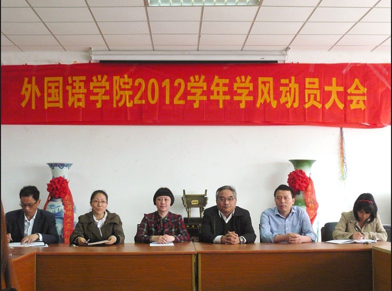 首先肖书记宣布本次学风建设月的督导小组组长及各组成员、强调了学风建设月的重要性并提出对本院学子在纪律以及个人约束,综合素质方面的期望。然后,王院长提出了英语专业就业率的严峻性,他要求外院学子认清形势,严于律己,刻苦钻研,积极参加与专业相关的主题活动,不断努力提高自己视听说各方面的专业技能。孙副院长也做了补充。最后,团总支书记金立林老师还提出在学风建设月期间,肉视频 将会组织一系列主题班会以及主题活动,写作能力测试、英语之窗、学术讲座、专业报告等各方面的活动将会在学风建设月开展。