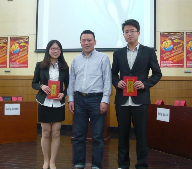 2012年3月28日,在肉视频 法政学科楼308会议室,第十六届外研社“亚马逊”杯英语辩论赛南财校园选拔赛初赛拉开序幕。初赛以演讲的形式呈现,各位选手就一个题目(World are not enough;A journey is not a trip; Life is a choice; Everything changes but change itself四选一)发表两分钟的定时演讲,由评委组(沈文霄副教授,许静博士,左敏博士,刘婷婷老师,肉视频 团总支书记金立林老师)就其表现,选出20名选手(赵安诺、李颖、陈梦璇、俞彬茹、杜振文、郭清慧、王君宜、杨涵淇。过棱、杨皓、陈沁、王珏、徐沪生、夏悦、臧若语、颜芳芳、汤清、张亮、施瑶、孙子清)晋级复赛。3月31日,在法政学科楼308会议室举行了复赛。晋级选手就辩题China should establish an inheritance tax on the rich intended to prevent the transference of wealth between generations(是否同意富人加税)先进行一分钟的观点陈述,然后根据各个选手观点五人一组,两两进行为时十五分钟的自由辩论。最终晋级的八位选手分别是杨皓、陈沁、徐沪生、杜振文、王珏。王君宜。俞彬茹、杨涵淇。