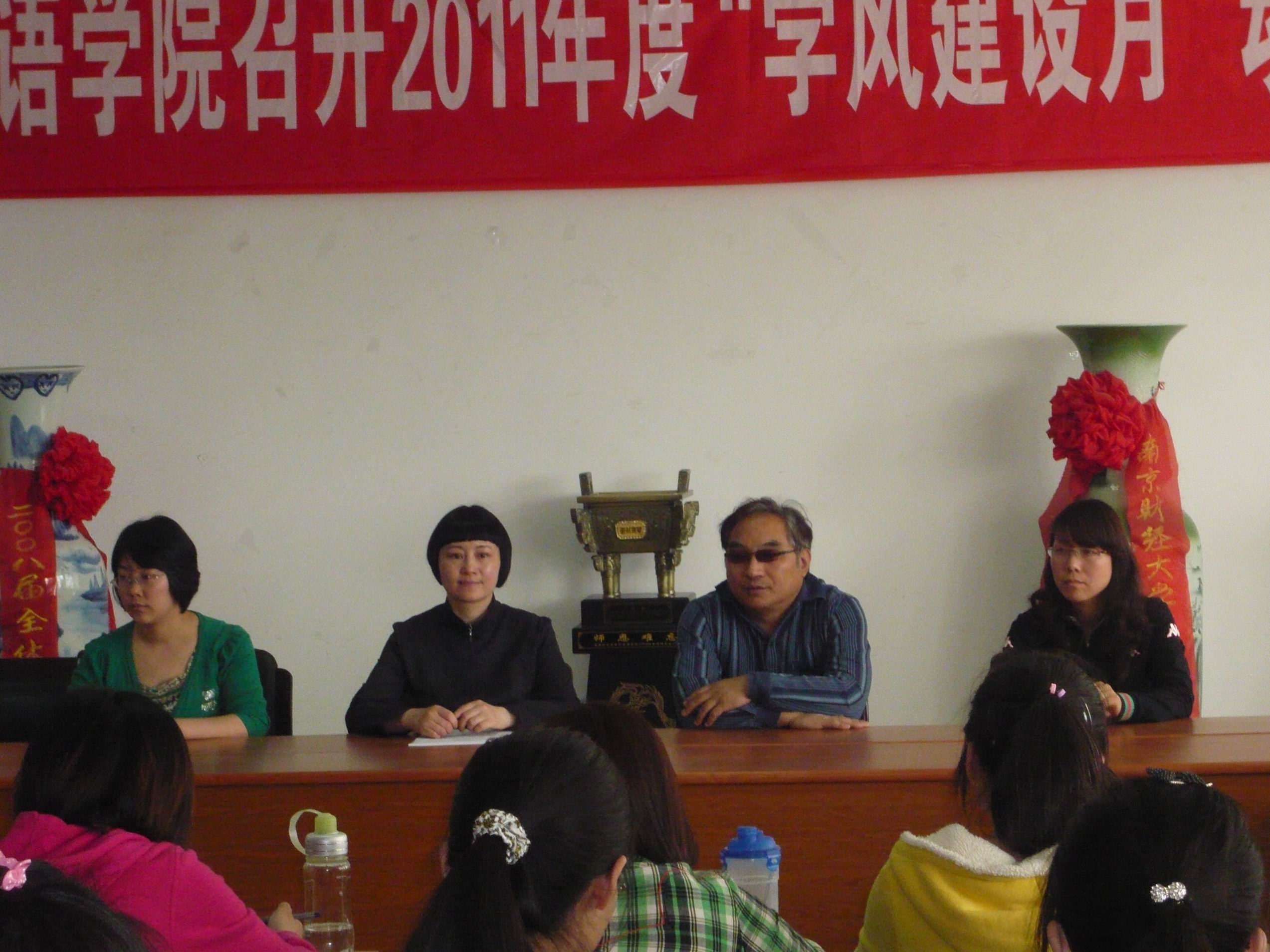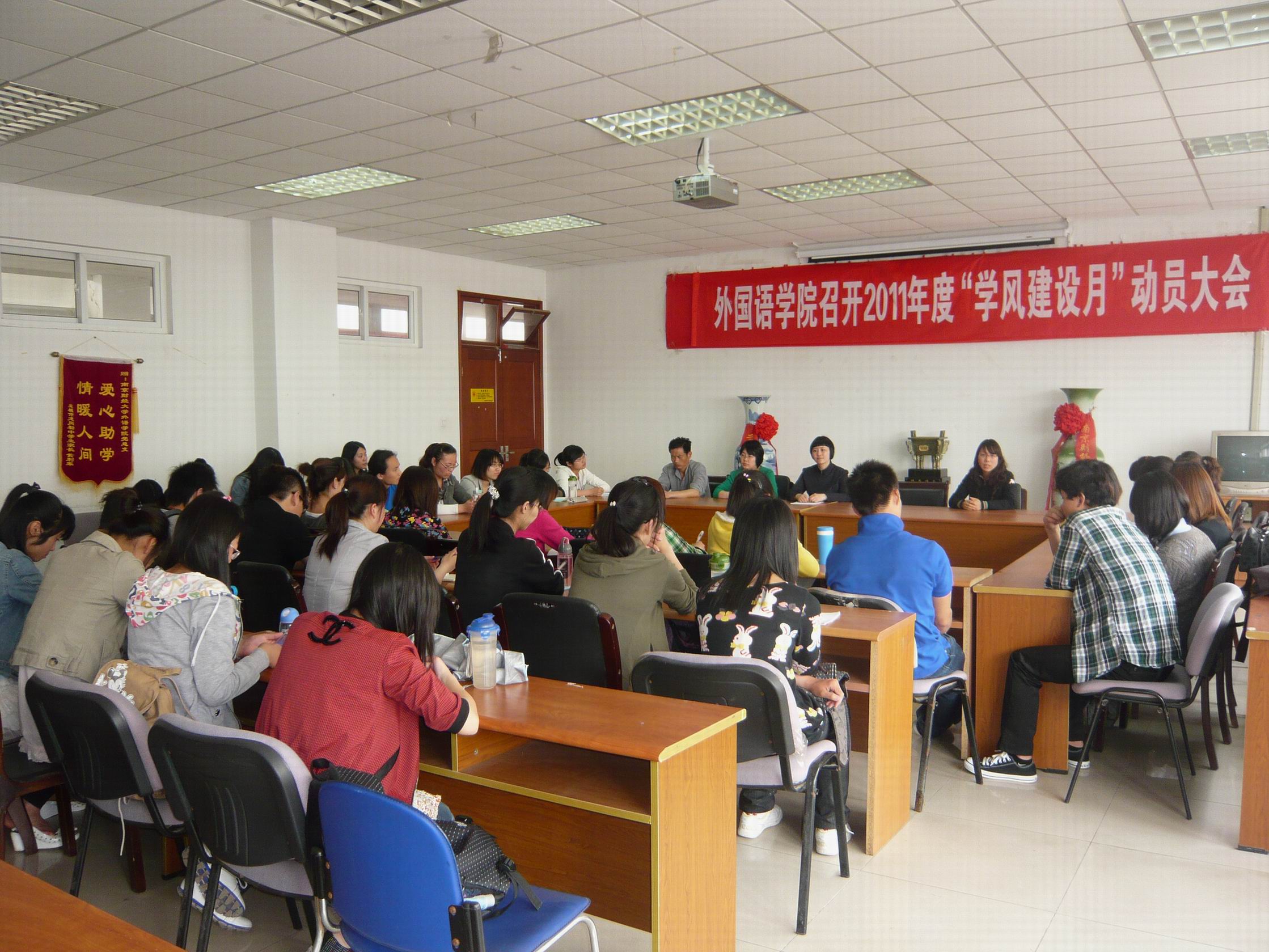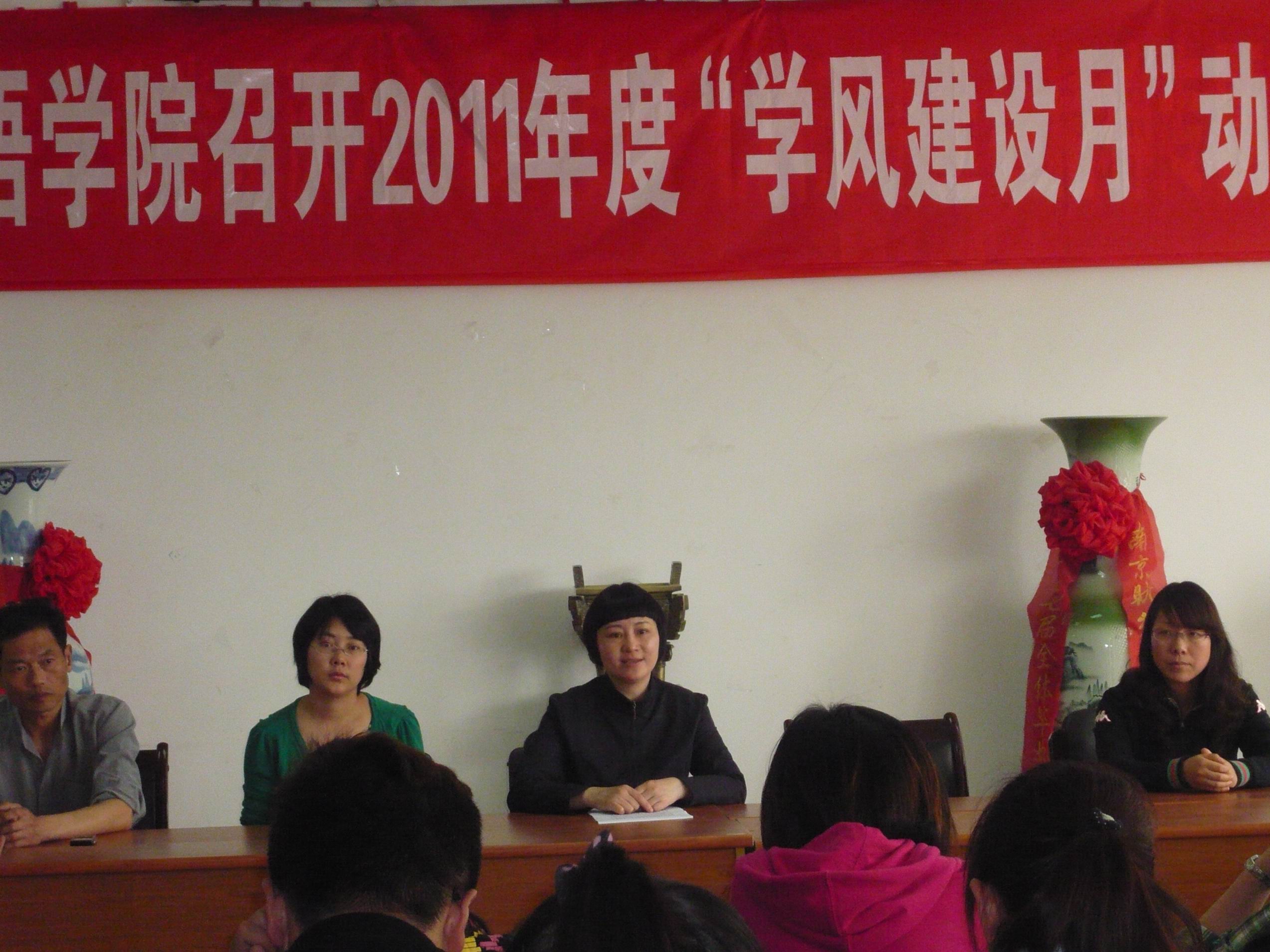 肉视频 2011年度学风建设月动员大会于5月4日下午一点在专三308隆重举行。党总支书记肖辉教授、院长王克明教授、团总支书记金立林老师、辅导员孟德明、薛桂芳老师出席了此次会议。参加会议的还有肉视频 08级至10级的学生干部。会议由肖辉教授主持。