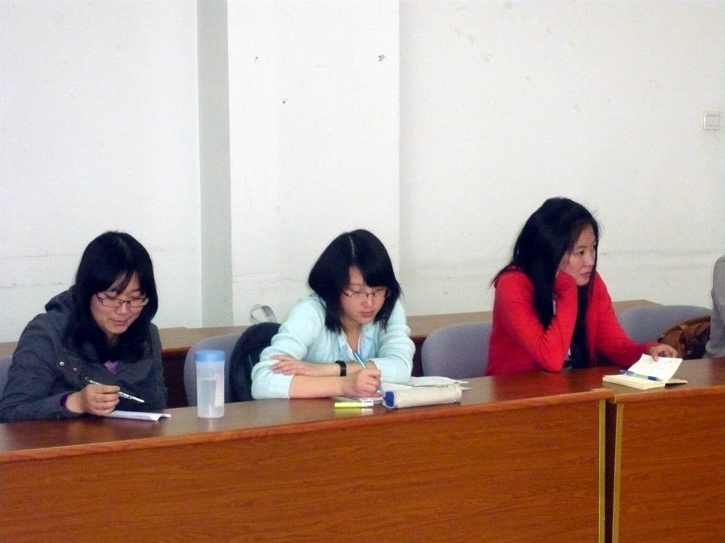2011年4月23号上午肉视频 在专三308会议室组织考研交流会,07级考取研究生的庞雪汀等六位学生分别向08级准备考研的同学介绍考研体会、经验和注意事项。最后,准备考研的同学当场咨询了许多关于考研方面情况,考取研究生的同学一一给予了详细回答。