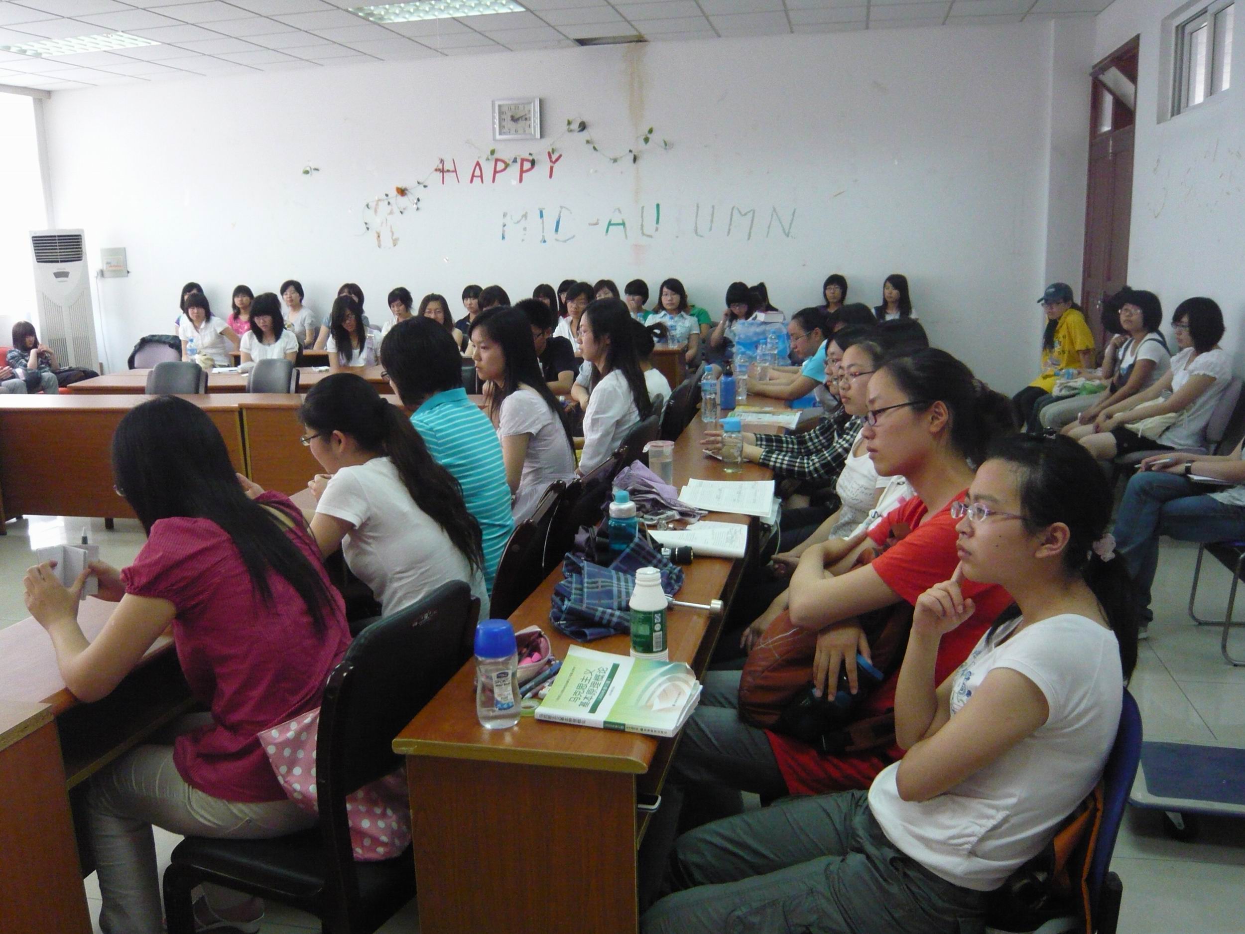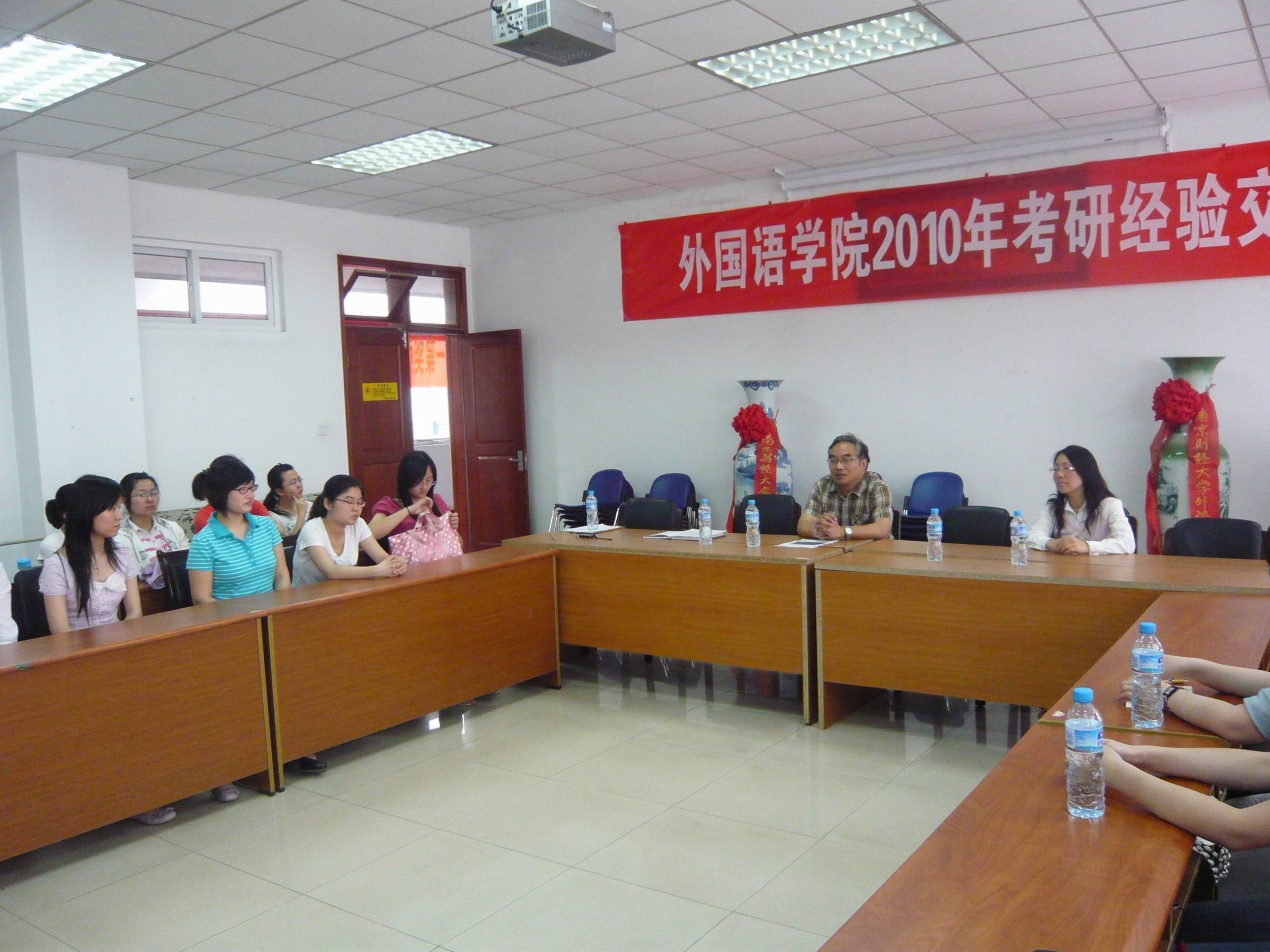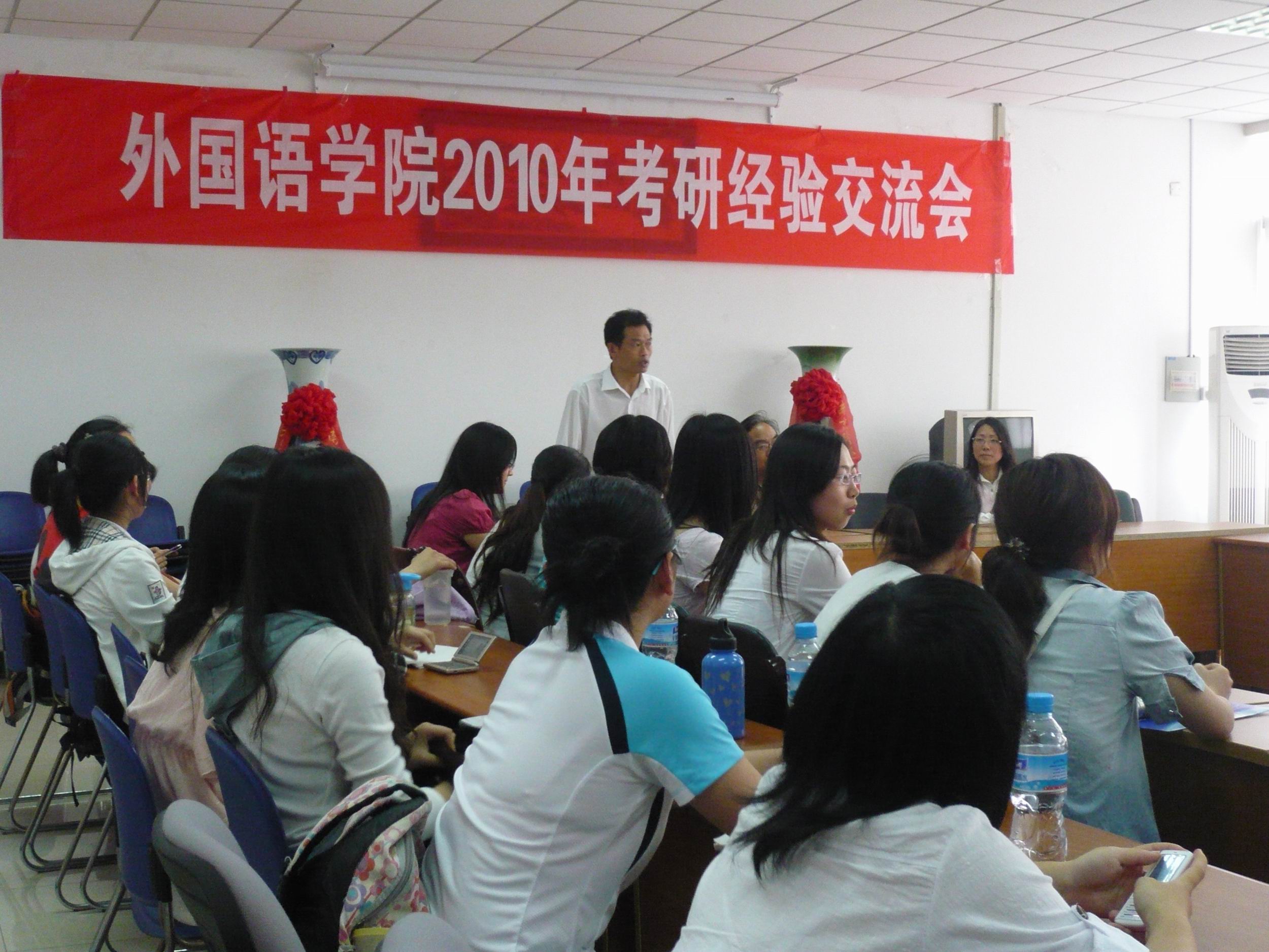 2010年5月26日下午两点,肉视频 2010年考研经验交流会在各级学生的期待中热烈展开了。在孟老师的组织下,王院长、金老师、8名准研究生和各级各班的60多名同学在熟悉的Z3-308参加了这次交流会。