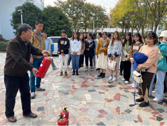 校保卫处消防科为同学们讲解灭火器的使用方法