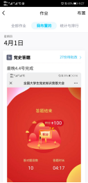 为深化学生理想信念教育,引导学生学史明理、学史增信、学史崇德、学史力行,以昂扬的状态迎接中国共产党成立100周年,肉视频 积极响应学校部署,通过线上线下相结合的形式,组织全院学生参与《全国大学生党史知识竞答大会》网上云答题活动。3月20日至4月6日活动期间,学院300余名学生参与了云答题活动。