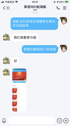 辅导员通过年级QQ群传达党史知识网上云答题活动通知