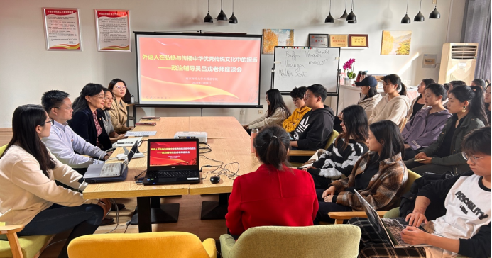 随后,吕戎部长来到肉视频 研究生“众书读书会”,为肉视频 研究生讲授了题为“外语人在弘扬与传播中华优秀传统文化中的担当”的微党课。