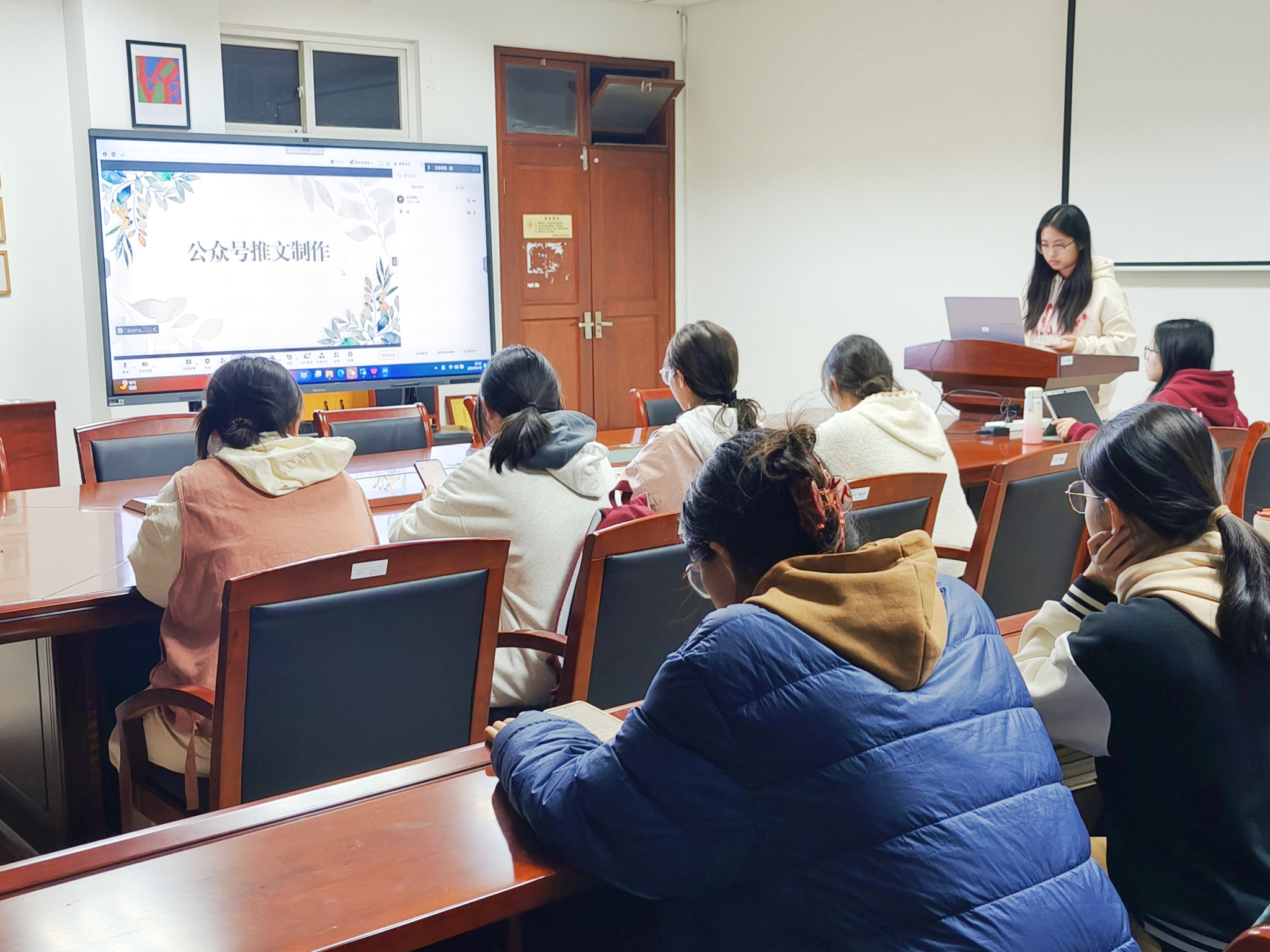 会议伊始,王思雨代表学院对徐晓阳老师表示欢迎。徐晓阳老师毕业于南京航空航天大学行政管理专业,曾在光明日报实习,曾就职于山东省电视台融媒体中心,有着丰富的新媒体运营经验。首先,徐晓阳老师从选题、文案排版、工具三个方面详细讲解了公众号推文制作相关知识。她将选题分为了学院重要活动、学工常规工作、传统节庆日等几个方面,将当下热门话题与学院特色相结合,激发联想思维,培养创作灵感,用心做推送。其次,徐晓阳老师分析了“南财外院”公众号推送中存在的问题,并以其他院校优秀案例为模板进行详细指导。最后,就如何进一步对微信推文的编辑优化分享了一些制作公众号图片的常用工具,以便我们更好地掌握推送技能。最后,大家根据日常工作中遇到的问题进行交流,徐晓阳老师全面耐心地回答了大家的问题。