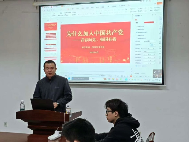 10月22日晚,应肉视频 邀请,学校机关党委副书记(主持工作)、党委组织部副部长张亦佳在德正楼308教室为第二十期分党校、青马班同学讲授了以“为什么加入中国共产党——青春向党,强国有我”为题的专题党课。