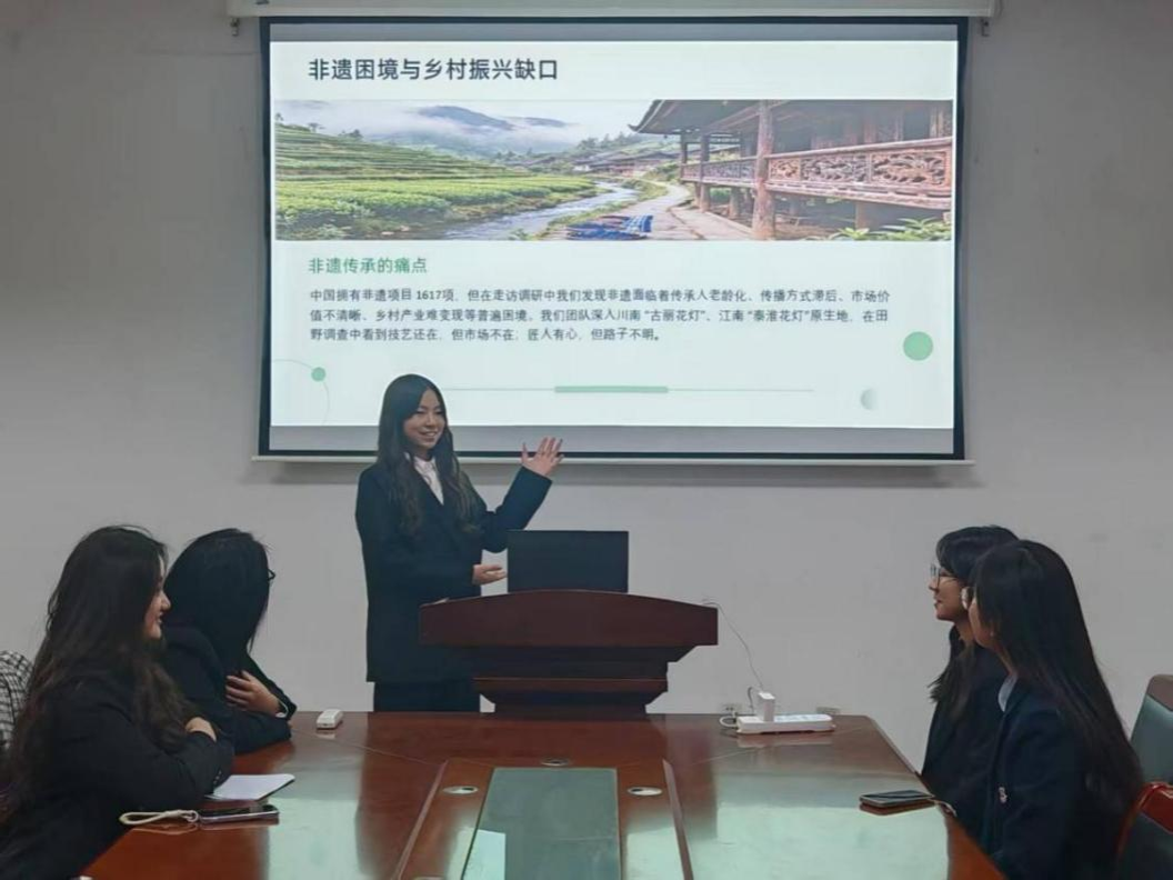 本次共收到13项参赛作品,涵盖AI赋能、AIGC等人工智能、非遗文化传播、乡村振兴、跨境文化传播、国际中文教育、语言传播等多个前沿方向。评审过程中,学院严格秉持“公平、公正、公开”的原则,由学院党委书记陆斌、院长孙勇彬以及副院长(挂职)王晨组建了评审小组,从创新性、可行性、市场前景、团队构成及社会价值等多个维度对项目进行综合评审。经过项目展示、现场答辩等环节的考核,最终筛选出《AI赋能中华文化出海的新路径探索——以短视频平台为传播载体的实践研究》、《历史的线迹,文化的桥梁:超越国界的汉服推广》、《融媒体下网络文学IP+AIGC的一键出海研究》等多个项目代表学院晋级下一阶段的校级竞赛。