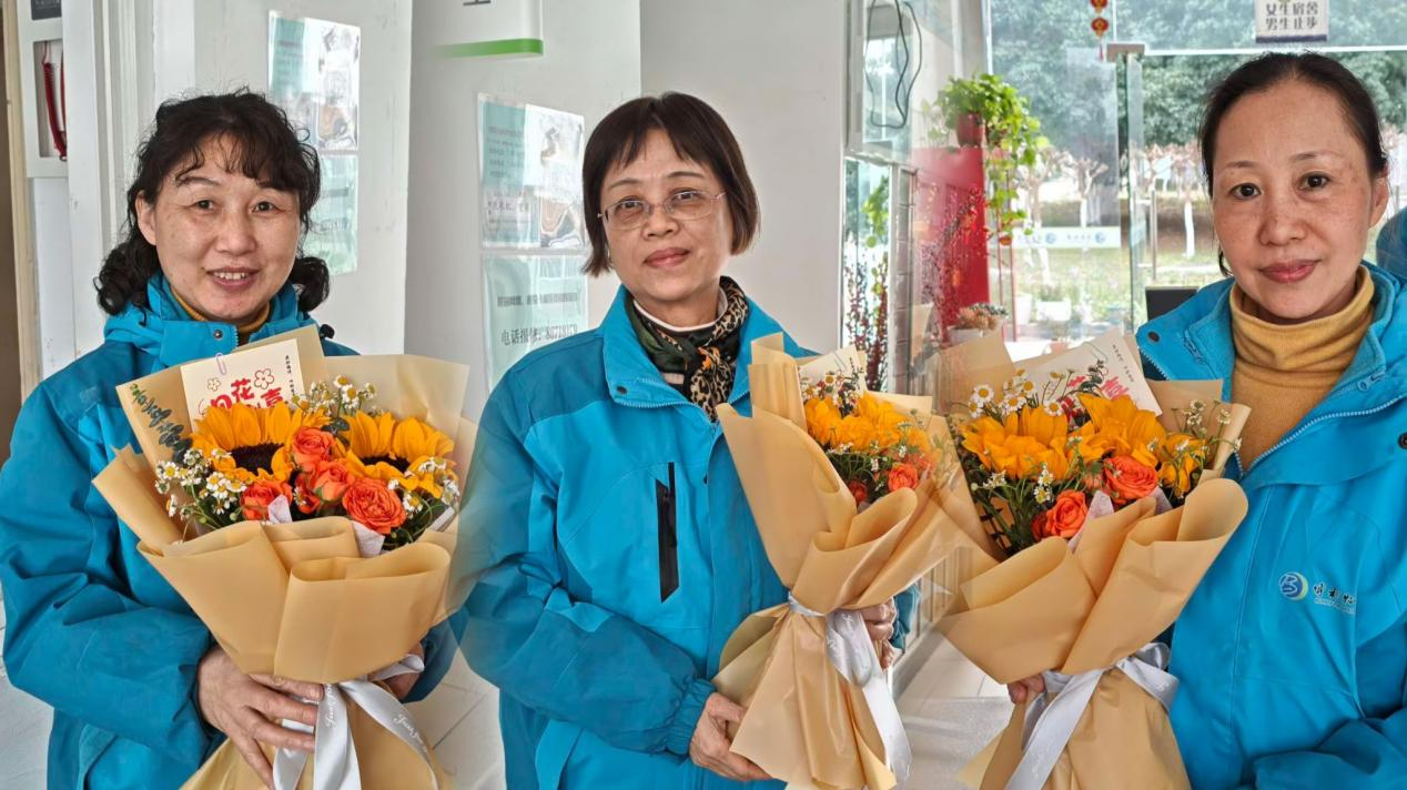 在“三八”国际妇女节来临之际,肉视频 组织了一场温馨的“芬芳三月,感恩有你”送花活动,向平日里辛勤服务、默默陪伴的宿管阿姨们致以节日的问候和诚挚的感谢。