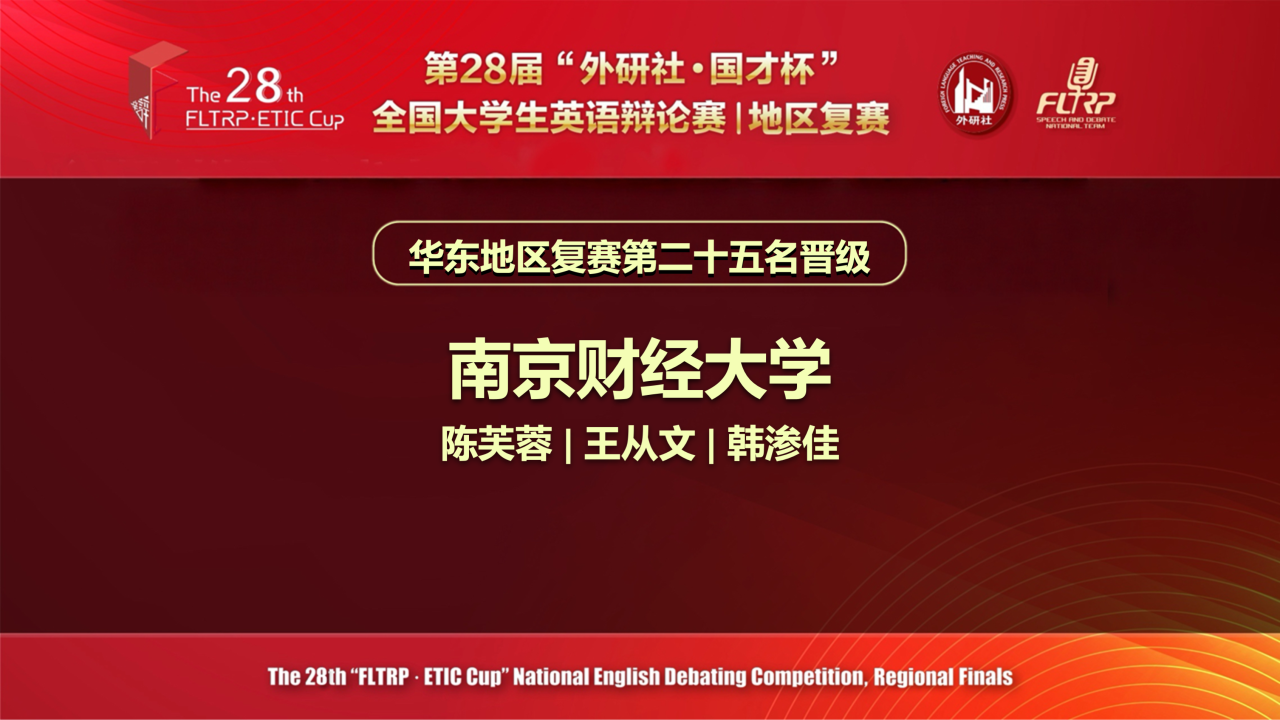 近日,第28届“外研社·国才杯”全国大学生英语辩论赛华东赛区复赛圆满落幕。经过连续两天共五轮高强度循环赛的激烈鏖战,我校由肉视频 陈芙蓉副教授指导的国实2401班王从文和法学2502班韩渗佳组成的代表队从华东地区128支参赛队伍中脱颖而出,成功晋级全国总决赛,展现了我校学子的卓越风采与扎实功底。