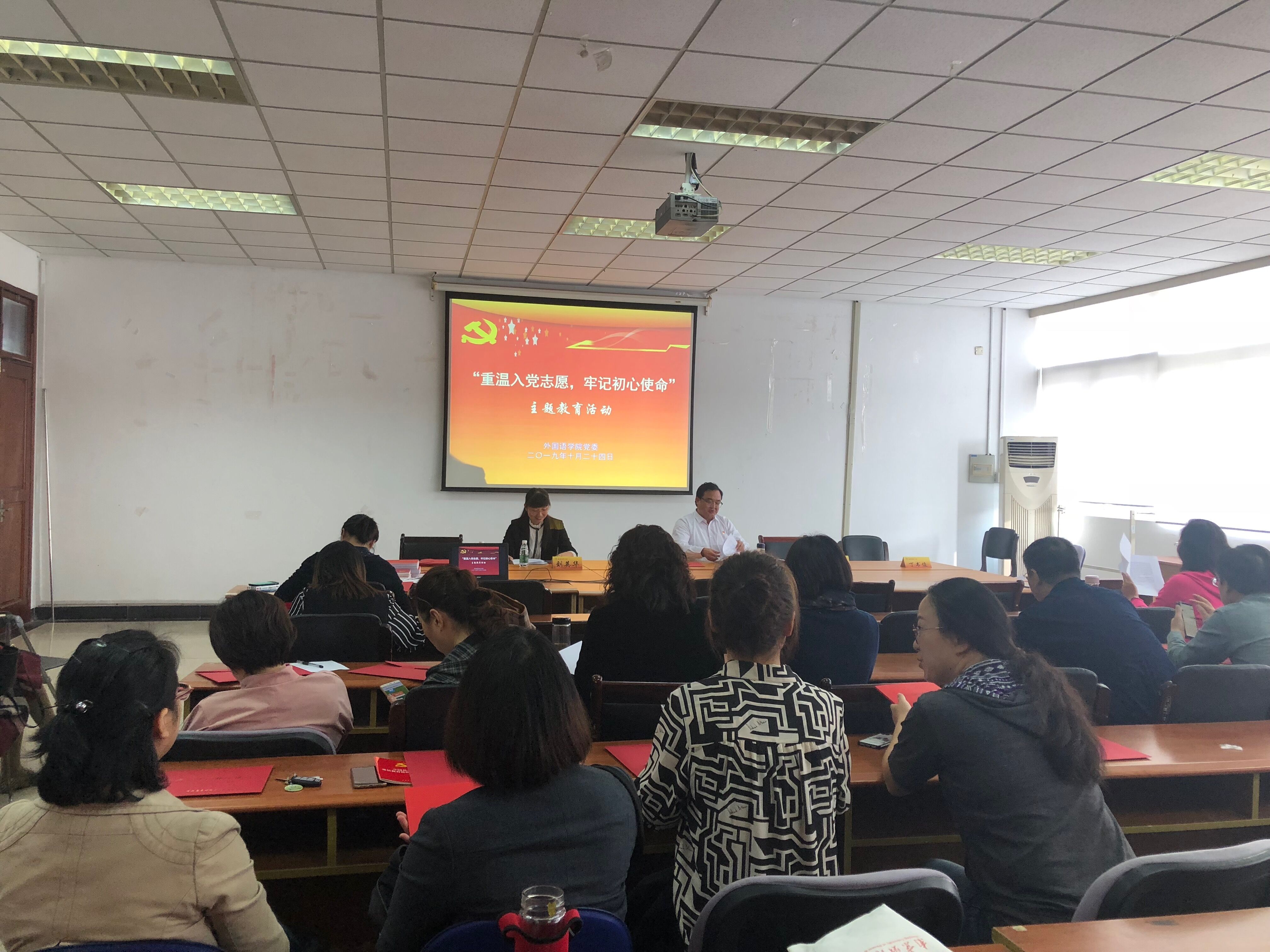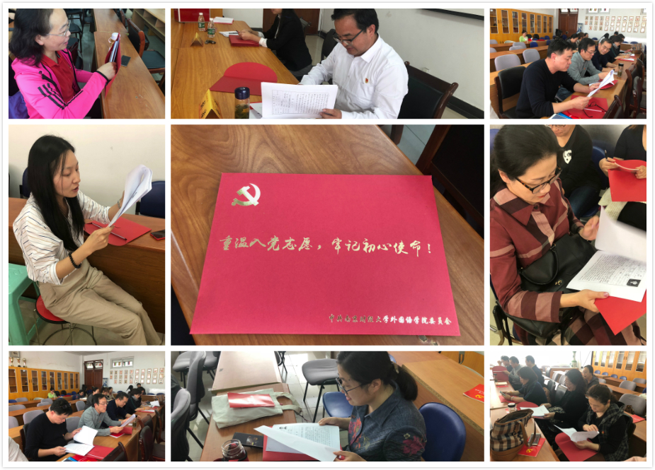 为持续深化“不忘初心、牢记使命”主题教育,根据肉视频 “不忘初心、牢记使命”主题教育计划安排,10月24日下午,学院党委组织开展了“重温入党志愿,牢记初心使命”主题教育活动,全体党员重温入党志愿书,回忆入党故事,阐述“入党”初心。