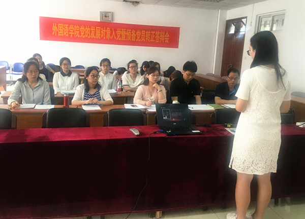 经过学院党委和本科生党支部一年的培养,本次参加答辩的预备党员为英语1301、英语1302、英语1401班的7位同学,另有7名培养期满的党的发展对象参加了入党答辩。