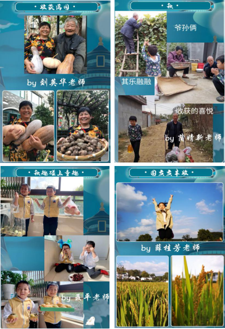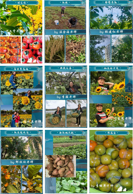 稻花香里说丰年,听取蛙声一片。学院师生们晒出的一张张丰收盛景上,是收获的果实,是喜悦的笑脸,是对当下的满足和对未来的希望。院党委书记李骏在青山绿水边捧着满满一箩筐菱角,喜悦之情溢于言表;院党委副书记刘英华的照片中是她的父母,他们怀中满满地捧着的是南瓜、冬瓜、芋头,而脸上洋溢着的是满满的幸福;程水英、叶家泉老师置身向日葵花丛中,人与花都散发着满满的活力,真可谓“待到山花烂漫时,她在丛中笑”。返乡的学生们说:“这次国庆节特意从南京回到家乡,吃着熟悉的家乡菜,看着以前年年都可以看见的乡村丰收景象,觉得特别亲切、满足。”